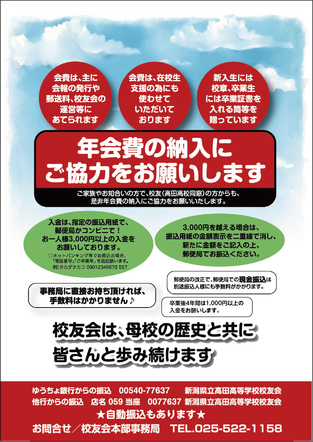 高田高校校友会は、会費制をとっております。